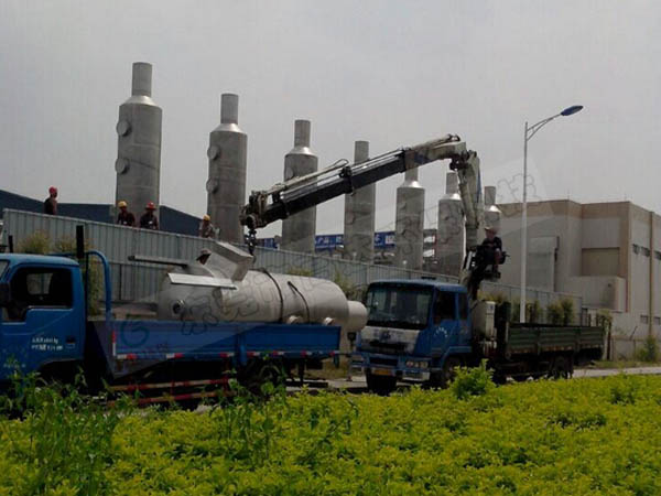 2.堿法吸收處理設備(旋流板式噴淋塔)廢氣體進入噴淋塔內螺旋向下再向上運動,旋風噴淋塔頂部的螺旋型噴嘴將清水呈實心錐狀噴射到筒體內壁形成水膜,煙塵廢中的煙塵粒子借助氣流旋轉運動所產生的離心力衝擊於除塵塔筒體內壁的水霧和水膜上而被水滴、水膜黏附捕獲,並隨筒壁不斷更新的水膜向下排出除塵塔,從而使含塵廢氣得以淨化排放。發電機尾氣排放口安裝有消音器和熱交器。淨化效率一般在90%以上,如果管理得好,效率還可提高。還具有消聲和除霧功能。